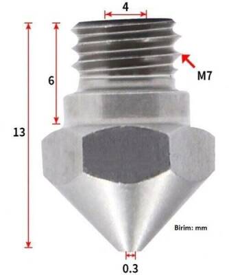 0.3mm Çelik Nozzle MK10-4mm-M7