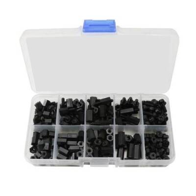 100 Parça M3 Siyah Plastik Aralayıcı Seti (Standoff).Çeşitli PCB uygulamalarında PCB\\\'nizi güvenli bir şekilde monte etmek için kullanabileceğiniz, 10 çeşit 100 parça M3 Siyah Plastik Aralayıcı setidir.