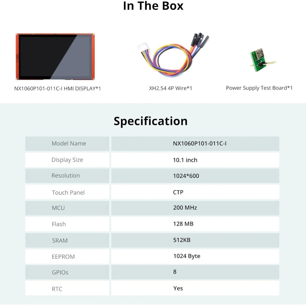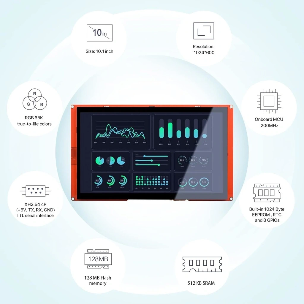 Endüstriyel kontrol sistemleri, akıllı ev otomasyonu, tıbbi cihazlar, CNC makineleri ve profesyonel ekipman arayüzleri için ideal bir çözüm olan 10.1 Inch Nextion Dokunmatik Ekran, Arduino ve çeşitli mikrodenetleyici platformlarıyla kolayca entegre edilebilir.