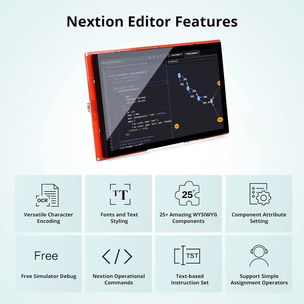 - Kullanıcı Dostu Programlama: Nextion Editor ile sürükle-bırak arayüz tasarımı.