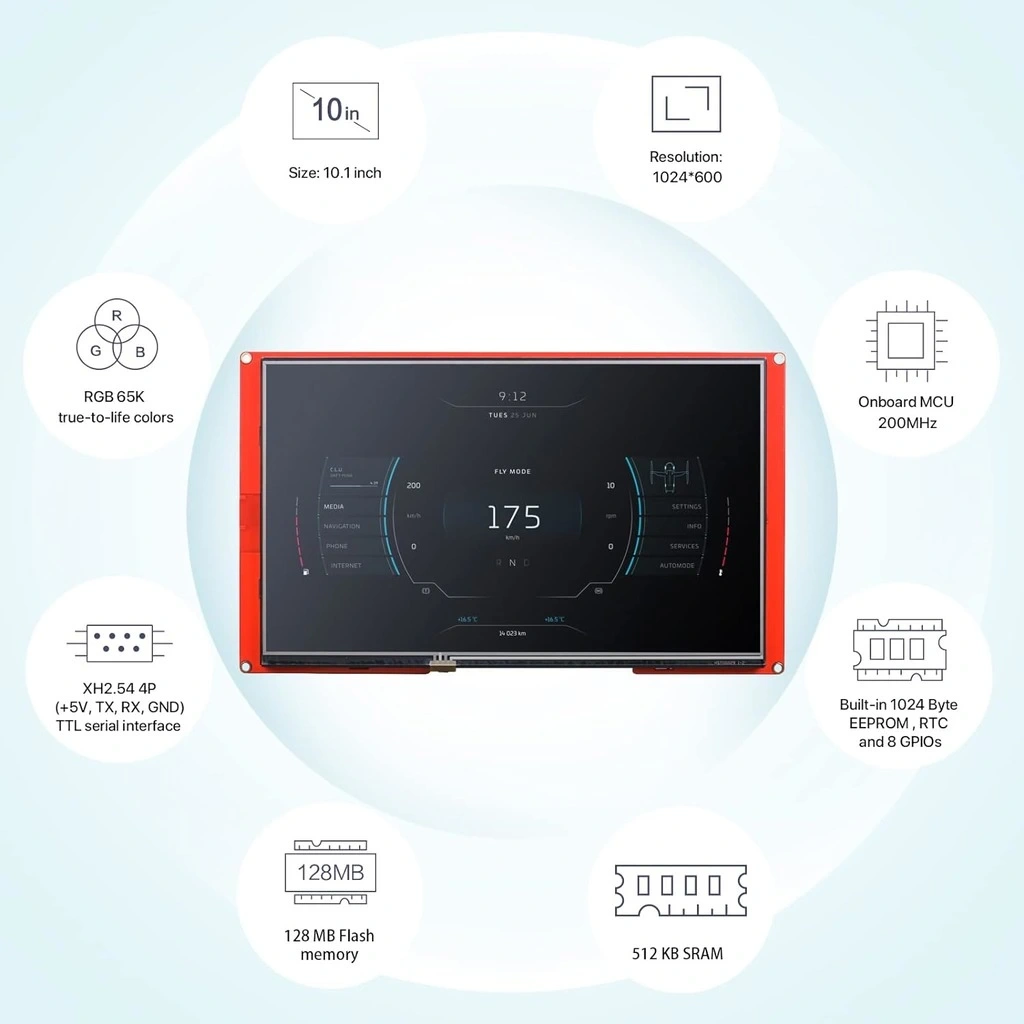 Geniş ekran boyutu ve gelişmiş özellikleriyle 10.1 Inch Nextion ekran, çeşitli sektörlerde farklı uygulamalar için ideal bir seçimdir.