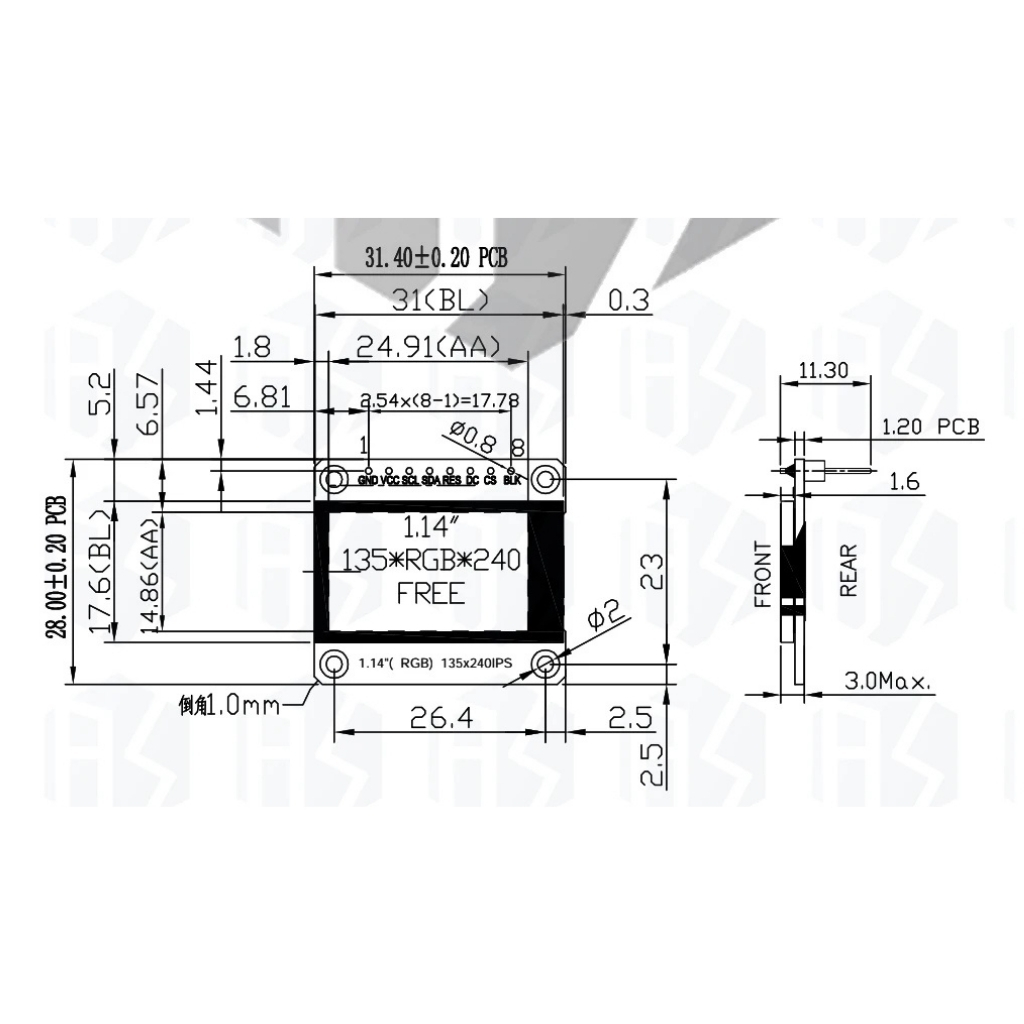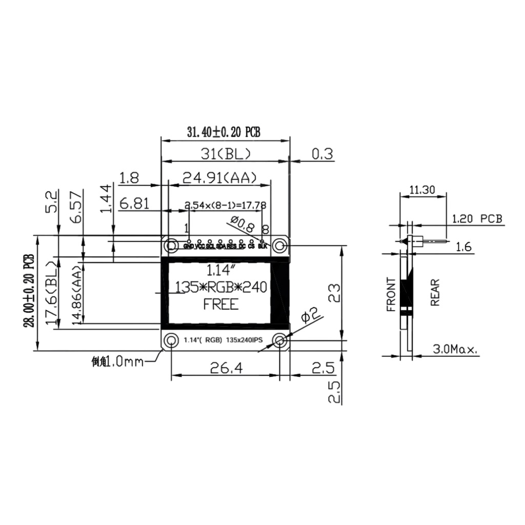 1.14 inch ST7789V Chip 135×240 RGB TFT IPS 8 Pin LCD Ekran Modülü