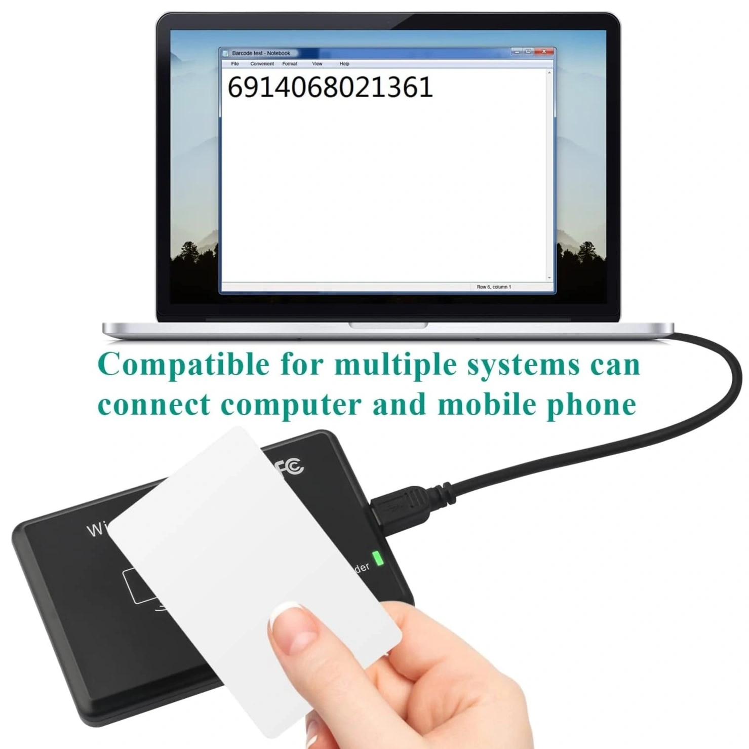 Tak-çalıştır özelliği sayesinde ek sürücü gerektirmeden Windows, Linux ve macOS işletim sistemlerinde sorunsuz çalışır. Okuyucu, kart ID numarasını klavye girişi olarak sisteme aktarır, böylece herhangi bir metin editörü, e-tablo veya veri tabanında doğrudan kullanılabilir.