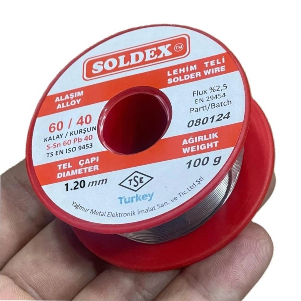1.2mm 200 gr Soldex Lehim Teli, yüksek kaliteli 60/40 (kalay/kurşun) alaşımı ile üretilmiş kalın çaplı, büyük hacimli bir lehim telidir. Ekonomik 200 gramlık paketi ile yoğun kullanım gerektiren profesyonel çalışmalar ve endüstriyel uygulamalar için ideal olan bu ürün, geniş yüzeyli bağlantılar ve güç elektroniği uygulamalarında üstün performans sağlar.