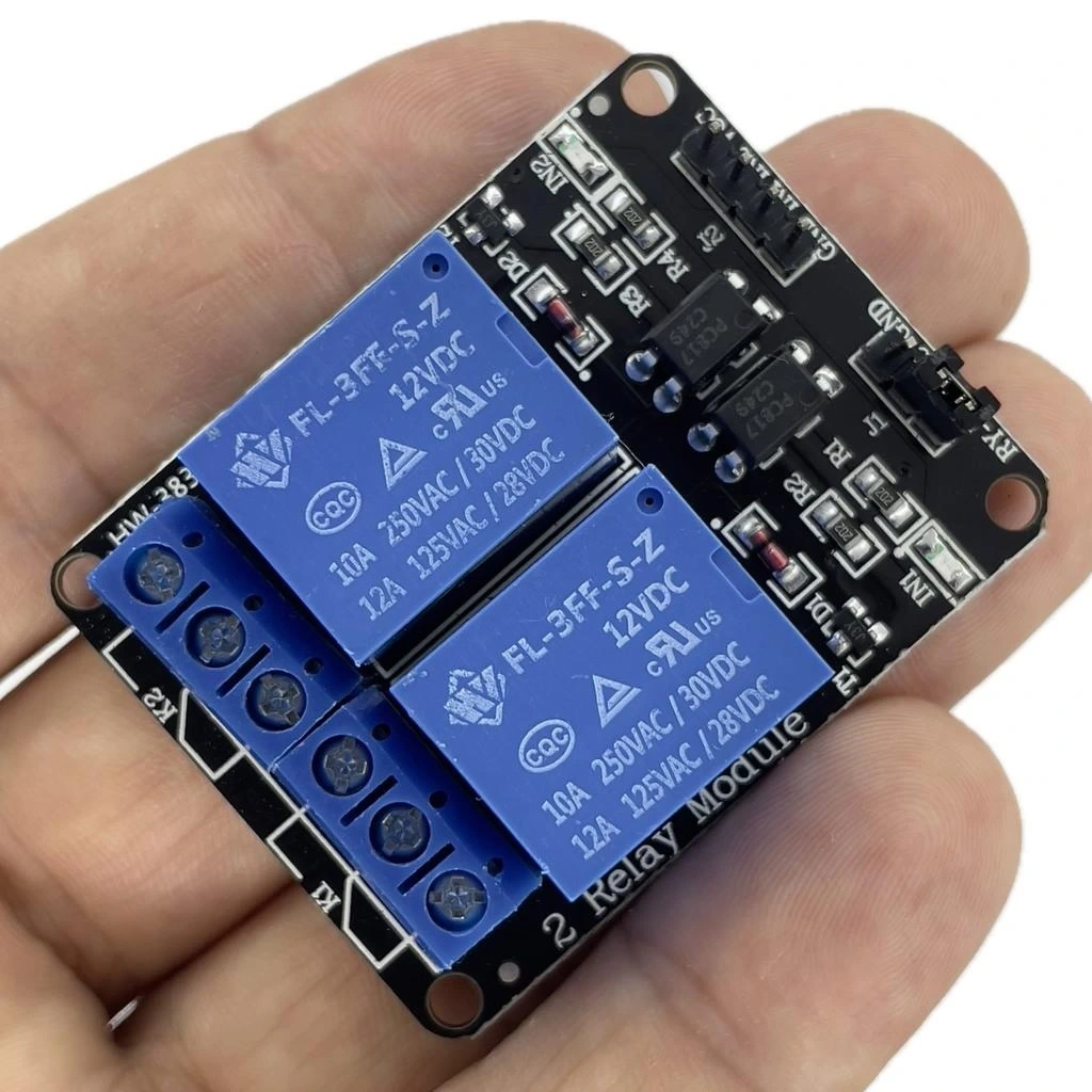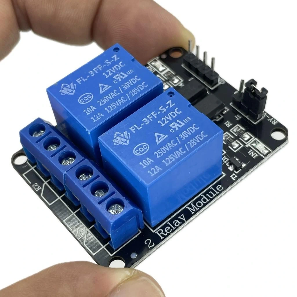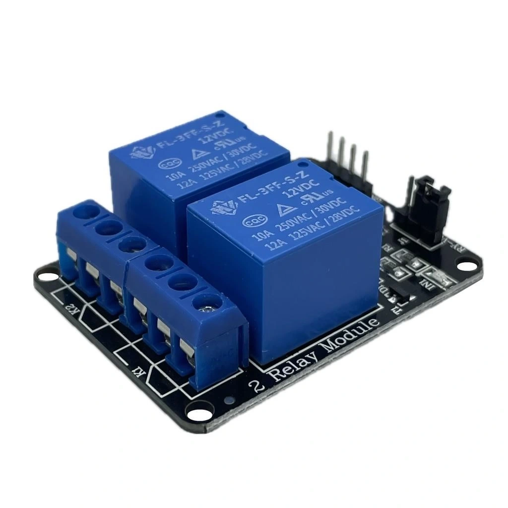 12V 2 Kanal Röle Kartı, mikrodenetleyiciler ile yüksek güçlü cihazları kontrol etmenizi sağlayan pratik bir elektronik modüldür. Her biri 10A yük taşıyabilen 2 adet röle içeren bu kart, 12V besleme voltajı ile güvenli bir şekilde çalışır.