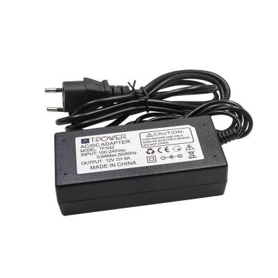 12V 5A adaptör. Üçlü power kablosu ve adaptör olmak üzere iki parçadan oluşmaktadır. 60W gücündedir. Power kablosu takıldığında yaklaşık 2 metreye yakın bir boyutu bulunmaktadır. 5.5x2.5mm çıkışa sahiptir. Ürün üzerinde prize takıldığında bir led yanmaktadır.