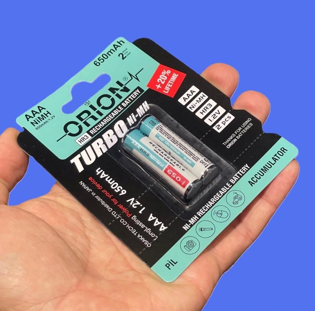 Orion'un yüksek kapasiteli 650mAh Ni-Mh AAA şarj edilebilir ince kalem pilleri, güvenilir performans ve uzun ömür sunar. Bu pil paketi, çeşitli küçük elektronik cihazlar için ideal bir enerji kaynağıdır.