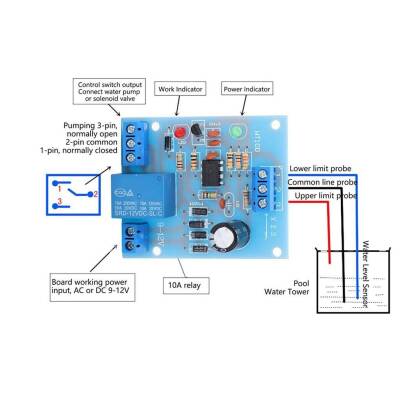 Otomatik su seviye kontrol rölesi, anahtar modülüdür. Su deposu seviye kontrolörü bir röle ve iki sensörün (maks-limit ve min-limit sensörleri) girişini kullanarak, cihazları buna göre açıp kapatabilir. Bir tankın sıvı seviyesinin kontrol edilmesi gereken uygulamalar için idealdir. Böyle bir uygulamada, sıvı seviyesi minimumda olduğunda, minimum limit sensörü, pompayı çalıştıran ve tankı sıvı ile dolduran röleyi tetikler. Sıvı seviyesi maksimum seviyeye ulaştığında, maksimum limit modülü tetikler rölenin pompayı kapatmasını sağlar.