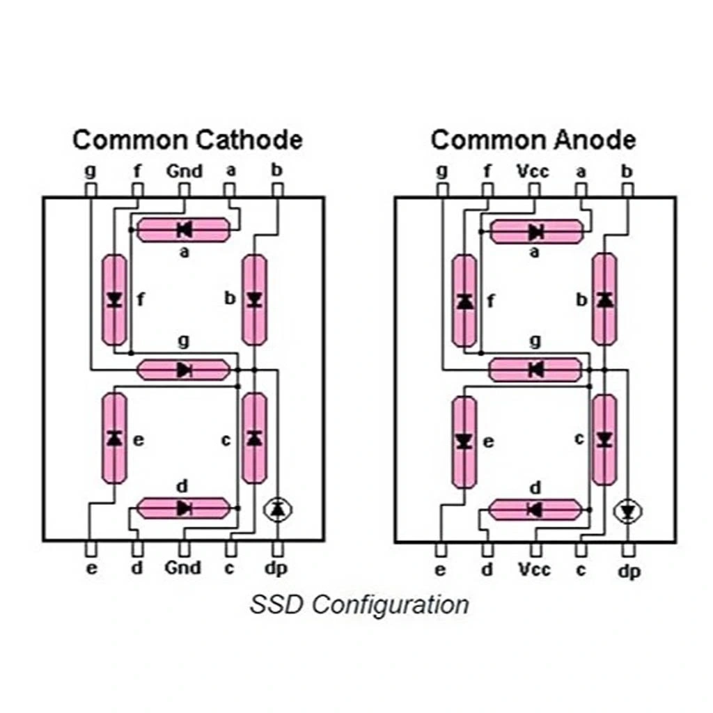 Ortak anotda tüm segmentlerin + uçları birleşiktir, segmentleri aktif etmek için LOW sinyal gerekir. Ortak katotda ise - uçlar birleşiktir, segmentleri HIGH ile aktif edersiniz.