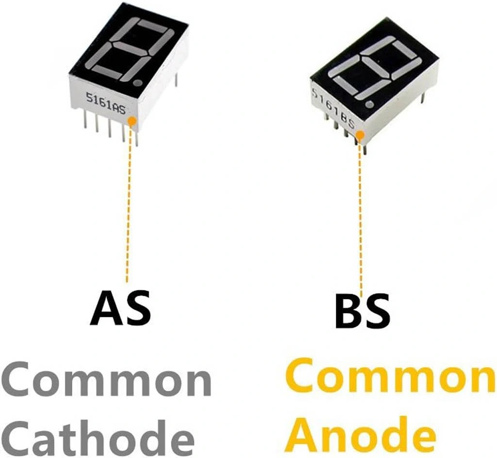 Ortak katotta tüm LED'lerin katotları birleşiktir ve GND'ye bağlanır. Segmentleri yakmak için HIGH sinyal gönderilir. Ortak anotta tüm anotlar birleşiktir ve pozitif voltaja bağlanır, segmentler LOW sinyalle yakılır.