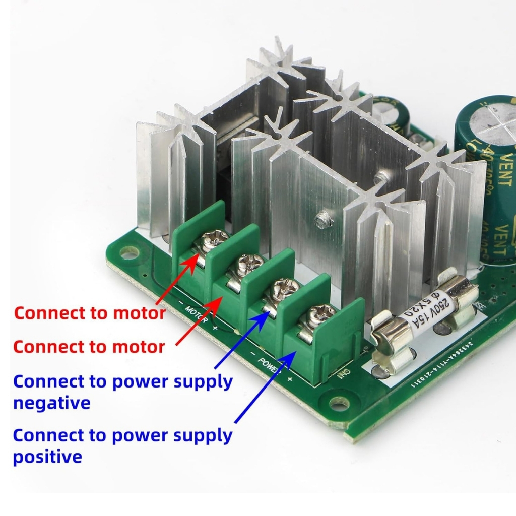 Bu modül, 6V ile 90V arası DC motorların hızını hassas bir şekilde ayarlamak için kullanılan bir PWM (Pulse Width Modulation) motor sürücü modülüdür. Maksimum 15A akım kapasitesiyle orta güçlü motorları verimli şekilde kontrol eder. Hız ayarı potansiyometre üzerinden yapılır ve sürüş hassasiyeti yüksektir.