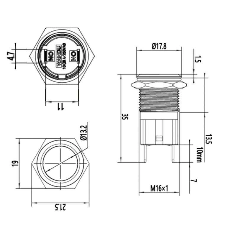 WD16D-P1 16mm Düz Yaylı Metal Buton