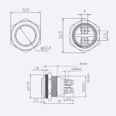 16G-G0 16mm Çıkık Yaylı Metal Buton