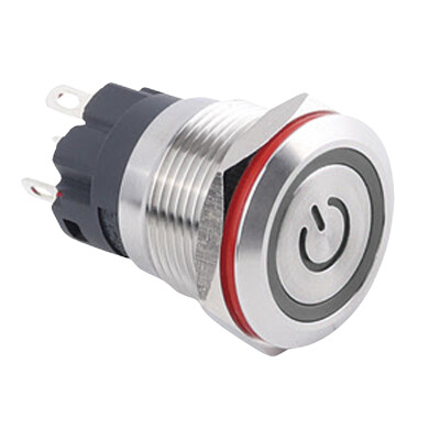 19A-P1Z-EC 19mm Düz Anahtarlı Işıklı Power Metal Buton - Beyaz