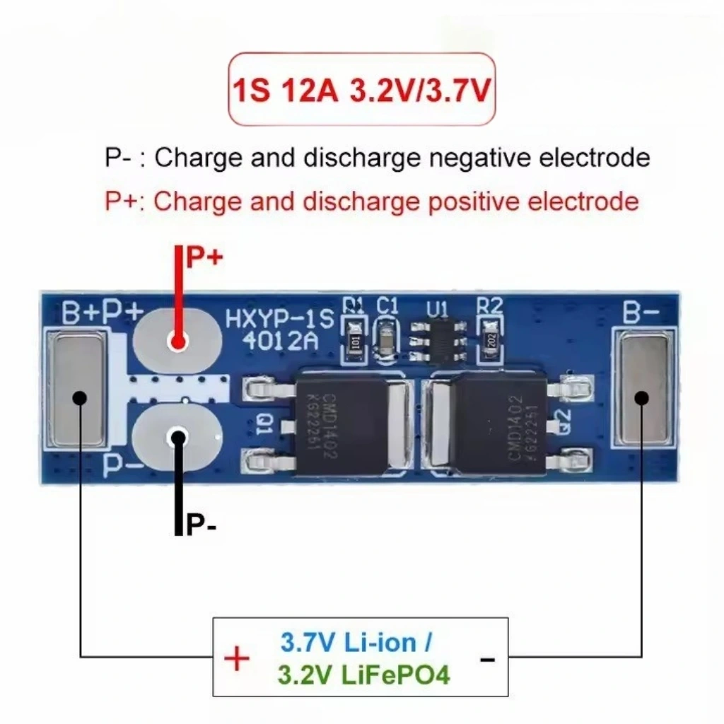 1S 12A BMS (Battery Management System) koruma kartı, tek hücreli (1S) lityum iyon (Li-ion) veya lityum polimer (LiPo) bataryalar için geliştirilmiş bir koruma devresidir. Aşırı şarj, aşırı deşarj, aşırı akım ve kısa devre koruması sunarak bataryaların güvenli çalışmasını sağlar ve kullanım ömrünü uzatır.