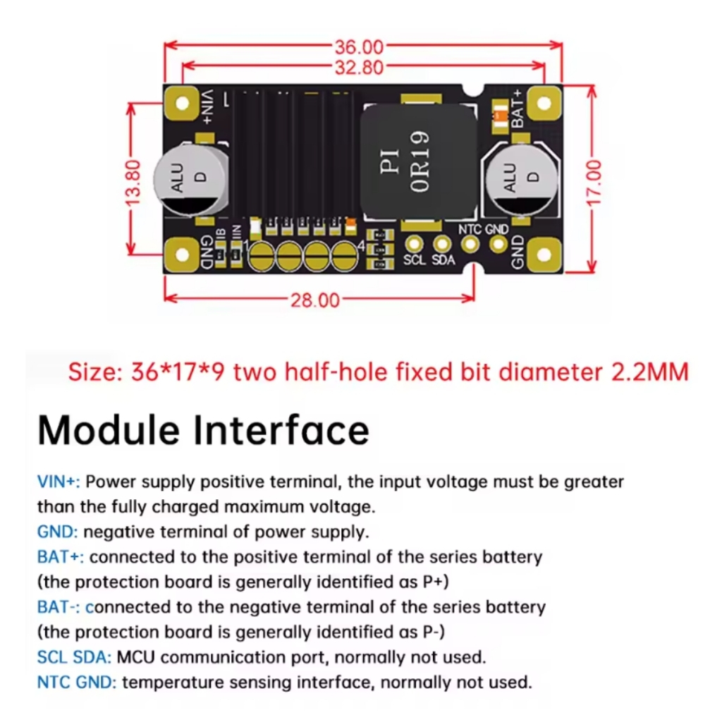 Çoklu hücreli lityum pil şarj modülü, 1S ila 4S (3.7V - 14.8V nominal) arası Li-ion ve Li-Po pillerin güvenli şekilde şarj edilmesi için tasarlanmıştır. Ayrıca entegre voltaj düşürücü (buck converter) özelliği sayesinde giriş voltajını ayarlayarak pilleri korur ve stabil şarj sağlar. 3A maksimum şarj akımı ve 40W güç kapasitesi ile yüksek performans sunar.