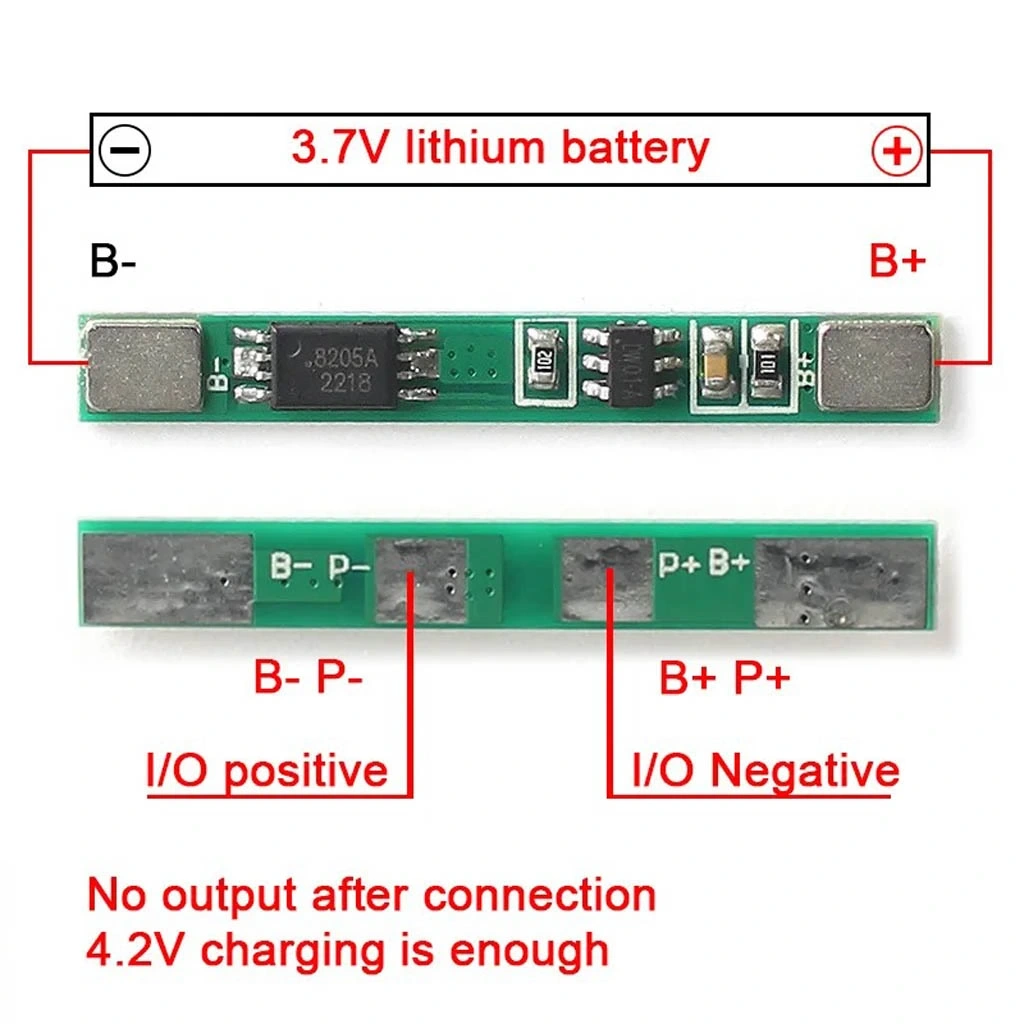 Bilgi: BMS (Battery Management System), lityum pillerin güvenli çalışması için gereklidir. 1S yapılandırması, tek bir lityum hücrenin kullanıldığı ve 3.7V nominal (4.2V tam şarj) voltaj sağladığı düzendir. Bu mikro BMS'ler, aşırı şarj, aşırı deşarj ve aşırı akım koruması sağlayarak, özellikle tek hücreli ultra kompakt uygulamalarda yangın riskini önemli ölçüde azaltır ve pil ömrünü uzatır.