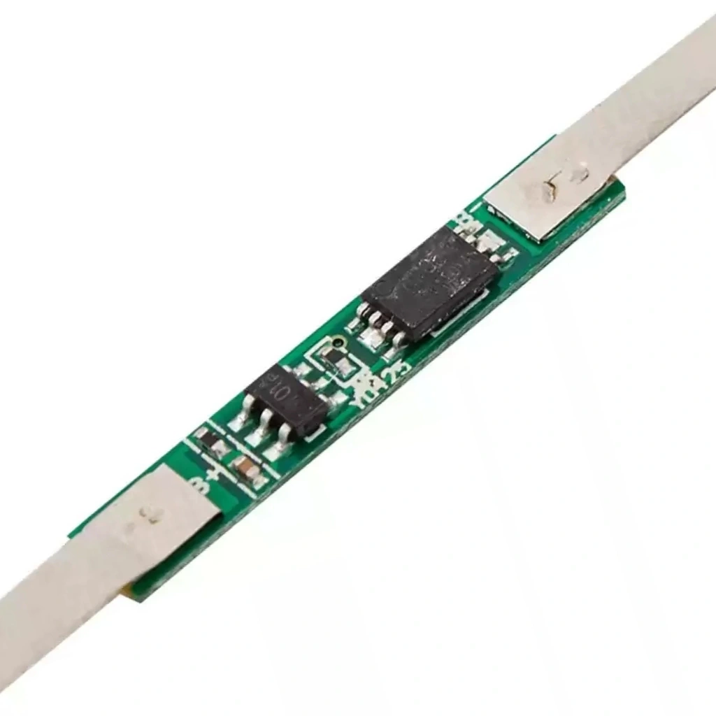 1S 3A BMS devresi, tek hücreli (1S) 3.7V lityum pillerin güvenli kullanımını sağlamak amacıyla tasarlanmış bir batarya koruma modülüdür. Bu ürün, nikel şeritleri ile birlikte gelir ve doğrudan pil paketine kaynaklanarak kolay kurulum sağlar. Aşırı şarj, aşırı deşarj ve kısa devre gibi durumlara karşı etkili koruma sunar.