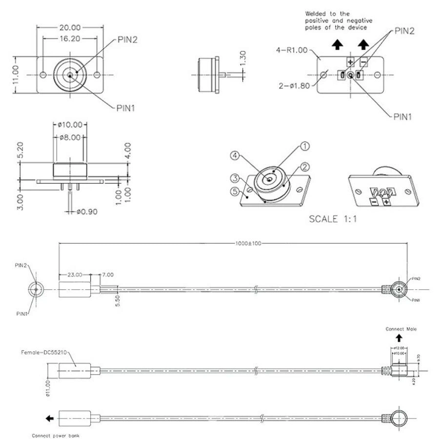 2-Pin 10mm 90C Kablolu PCB'li Pogo Pin Manyetik Konnektör Takımı - DC Soketli