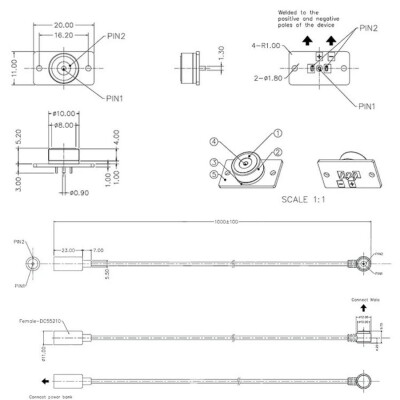 2-Pin 10mm 90C Kablolu PCB\\\'li Pogo Pin Manyetik Konnektör Takımı - DC Soketli