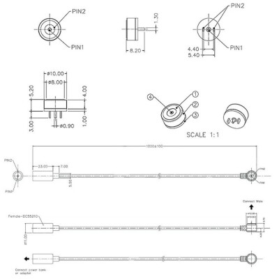 2-Pin 10mm 90C Kablolu Pogo Pin Manyetik Konnektör Takımı - DC Soketli