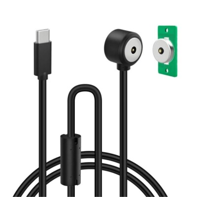 2-Pin 15mm 90C Kablolu PCB\\\'li Pogo Pin Manyetik Konnektör Takımı - Type-C Soketli, 5-36V aralığında 5-10A akım taşıma kapasitesine sahiptir. Erkek - Dişi takım olarak gönderilmektedir. Konnektör parçaları birbirlerine yaklaştıklarında mıknatısları doğrudan birbirine yapışmaktadır.