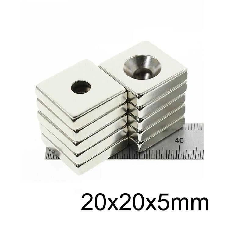 20X20x5-5mm Havşa Delikli Neodyum Güçlü Mıknatıs - Neodim Magnet