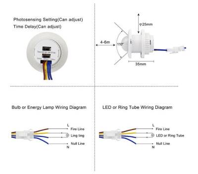 Bu ürün 220v lambalarınızı otomatik yapmak için kullanılan bir sensördür. Hareketleri algılayarak bir sinyal çıkışı verir ve lambanızın yanmasını sağlar. Enerji tasarruflu , led, floresan gibi lambalarda kullanılabilir. Ürün üzerinde üç farklı çalışma modu ve üç farklı zaman ayarı bulunmaktadır. Karanlıkta, kısmi karanlıkta (akşamları) yada tüm gün kullanıma ayarlayabilirsiniz. 5 dakika, 45saniye ve 15saniye çalışma modları mevcuttur. Bağlantısı oldukça kolaydır. Uzun olan 2 kablo 220v kaynağa, kısa olan kablolar ise lambaya bağlanır.
