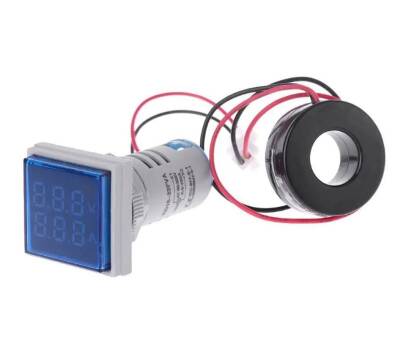 22mm Dijital Voltmetre-Ampermetre AC 20-500V 0-100A Mavi