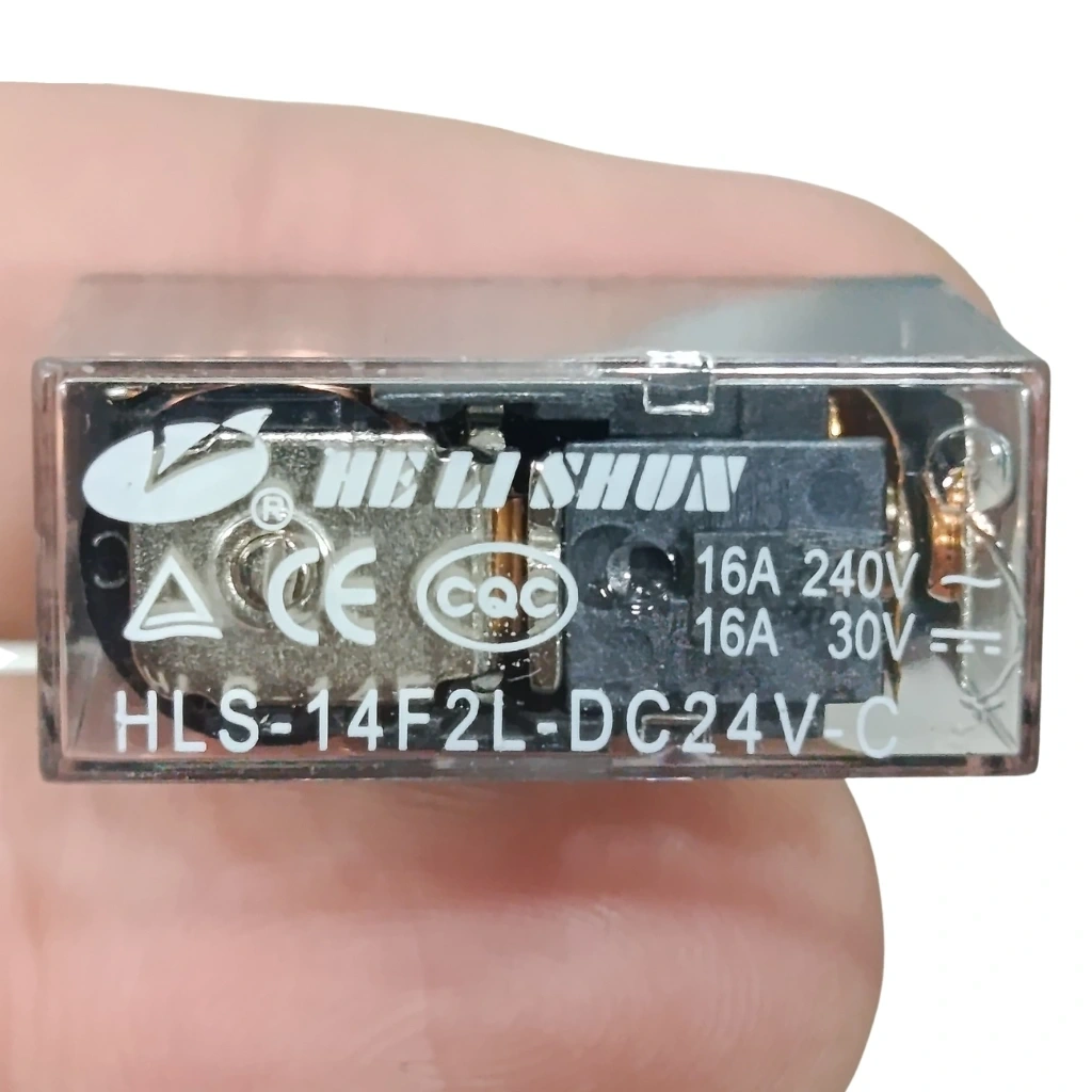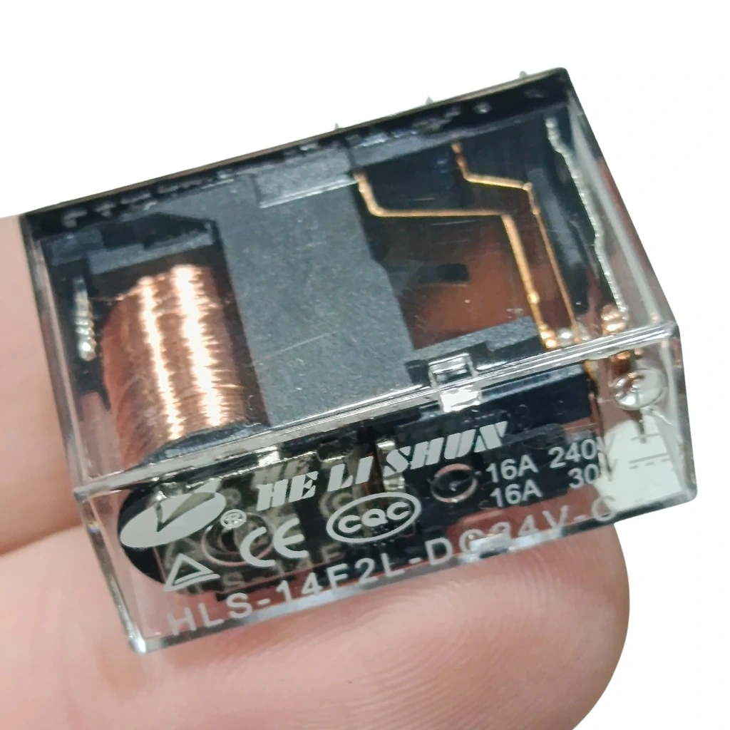 Helishun HLS-14F2L Serisi, şeffaf, düşük güç tüketimi ve yüksek hassasiyete sahip tek kontak rölelerdir. 24V ile çalışır 16A yüke kadar dayanır, daha düşük amper değerleri için de kullanımı uygundur. 16A akım değeri geçilmemelidir.