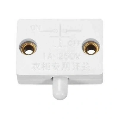 250V 1A Dolap Kapak Switch NC - Beyaz.Her türlü dolap kapağı için uygundur: gardırop, dolap, şarap dolabı, kitap dolabı, dosya dolabı, duvar dolabı vb.Normal pozisyondayken iletimi sağlarken üzerine basıldığında iletimi kesmektedir.