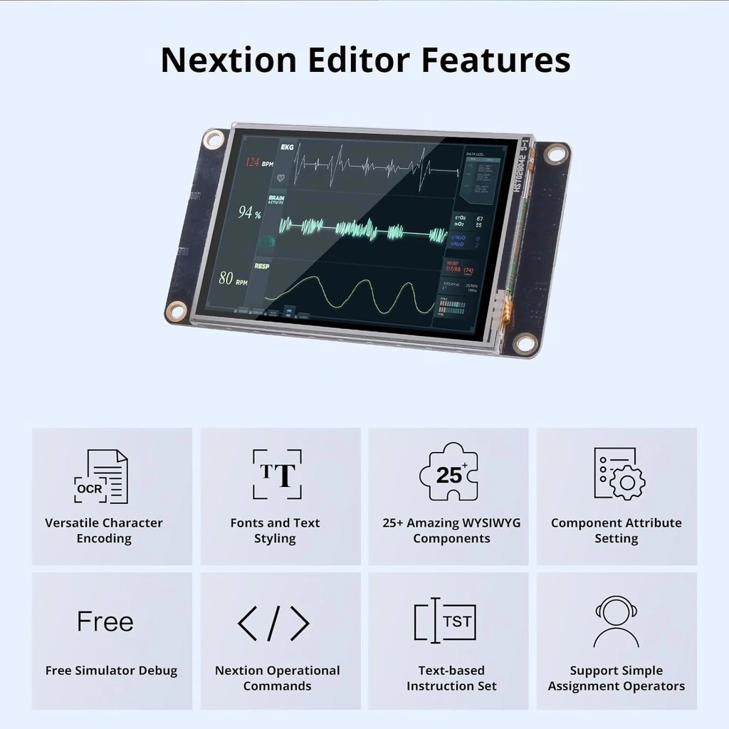 - Geniş Ürün Yelpazesi: Farklı boyut ve serilerde Nextion ekranlar.