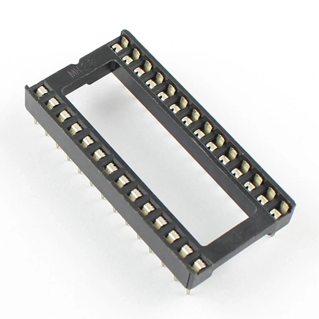 28 Pin Entegre Soketi (Geniş), 28 pinli DIP (Dual In-line Package) entegrelerin kolay montajını ve değiştirilmesini sağlayan bir bağlantı elemanıdır. Geniş yapısı ile 0.6 inç (15.24mm) satır aralığına sahip entegreler için tasarlanmış olan bu soket, dayanıklı termoplastik gövdesi ve yüksek kaliteli kontak yapısı ile güvenilir bağlantı sağlar.