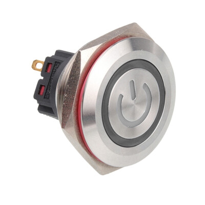 28B-P1Z-EC 28mm Düz Anahtarlı Işıklı Power Metal Buton - Beyaz