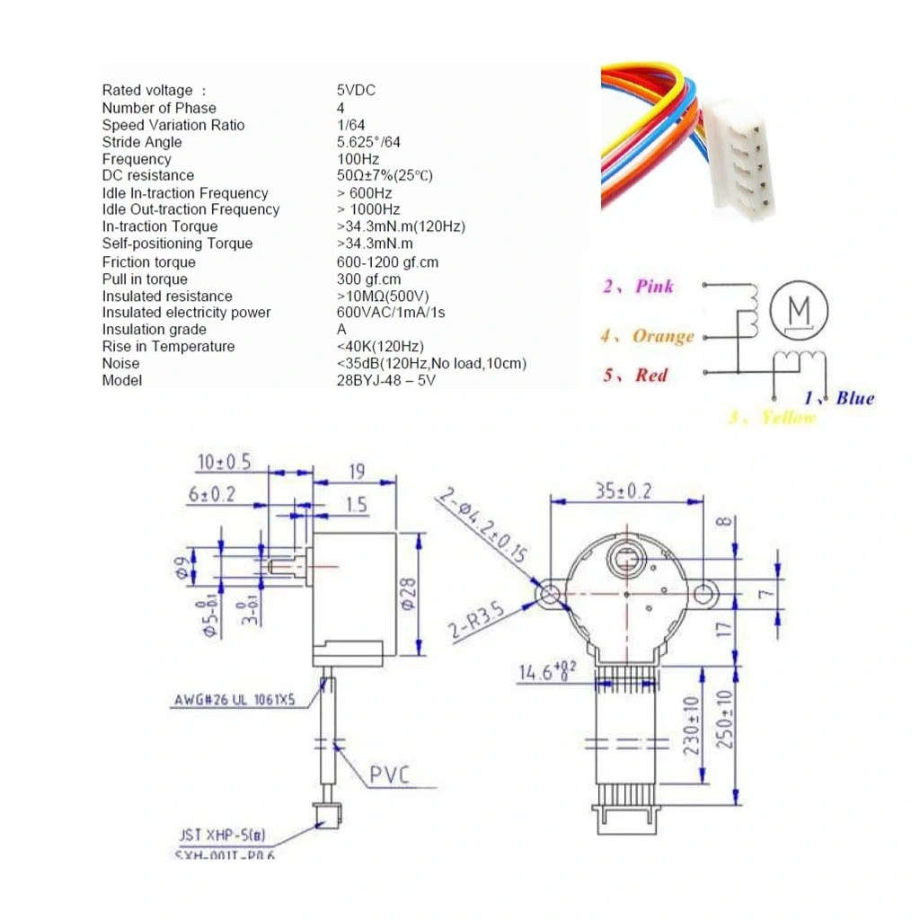 - Adım Sayısı: 32 adım/devir (iç rotor), 2048 adım/devir (redüktörlü çıkış)