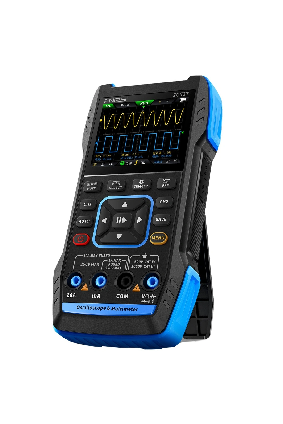 FNIRSI-2C53T, profesyonellerin bakım ve araştırma alanlarında kullanımı için tasarlanmış, çok yönlü ve oldukça pratik bir üçü bir arada çift kanallı dijital osiloskoptur. Bu cihaz, osiloskop, multimetre ve sinyal jeneratörü işlevlerini bir arada sunar. Osiloskop, FPGA + ARM + ADC donanım mimarisine sahip olup, 250MS/s örnekleme hızı, 50MHz analog bant genişliği ve ±400V?a kadar tepe voltaj ölçümlerini destekleyen entegre yüksek voltaj koruma modülü içerir. Ayrıca, dalga formu ekran görüntülerinin kaydedilmesi ve ikincil analiz için görüntülenmesini destekler.
