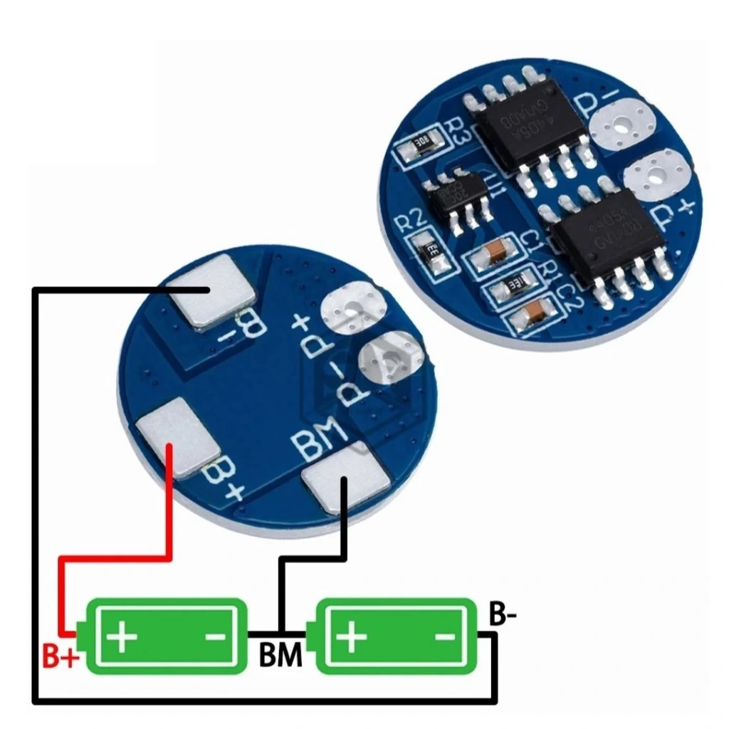 2S BMS, 2 seri grup yönetir. Her grupta istediğiniz kadar pili paralel bağlayabilirsiniz. 2S1P (2 pil), 2S2P (4 pil) gibi. 5A limitini aşmayacak uygulamalar için idealdir.
