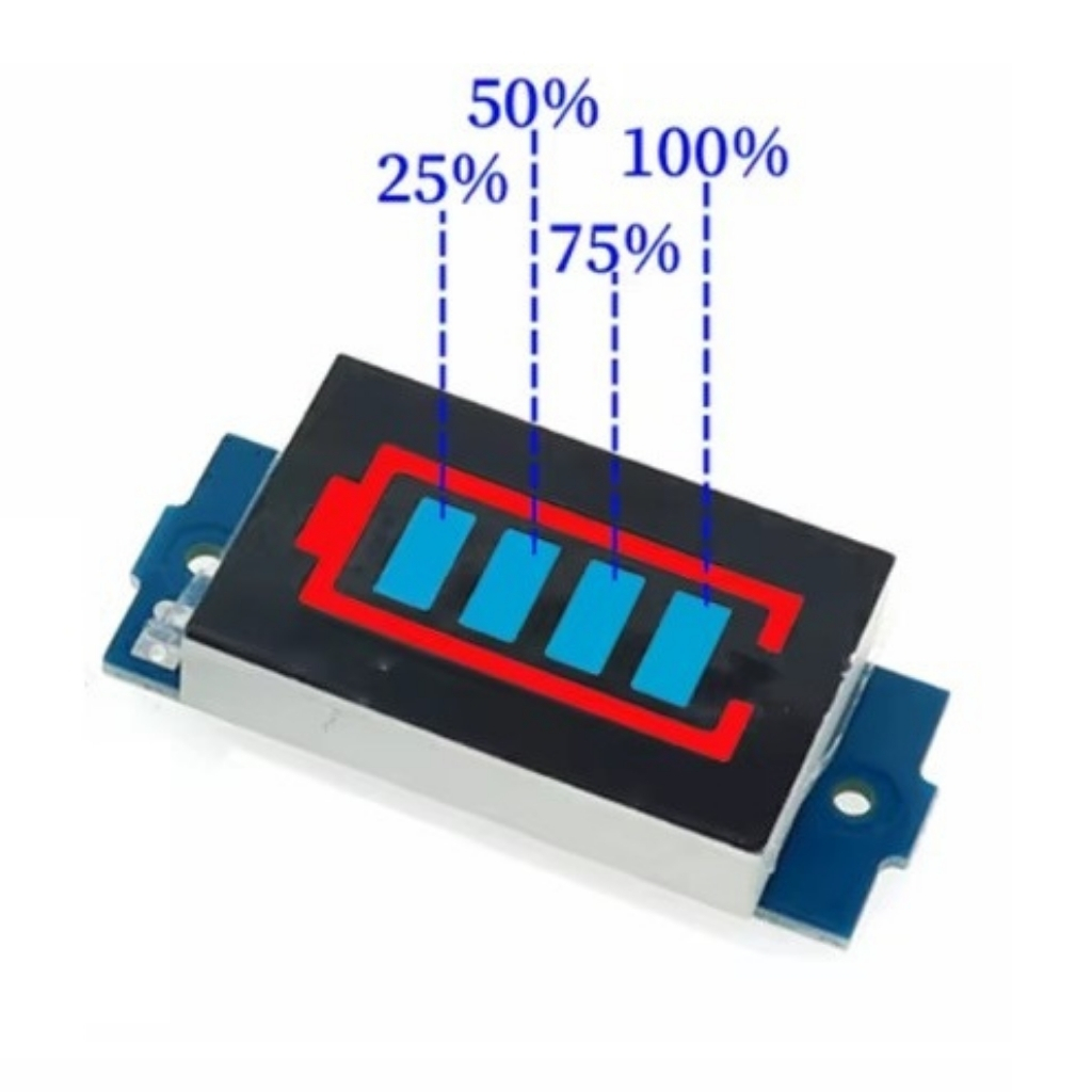 2S Lityum Batarya Kapasite Göstergesi Modülü, 2 hücreli (2S) lityum pillerin gerilim seviyesini ölçerek kapasitesini gösteren bir ekran modülüdür. Pilin doluluk oranını LED göstergesi ile kullanıcıya sunarak, şarj durumunu kolayca takip etmeyi sağlar. Lityum-iyon (Li-ion) ve lityum-polimer (LiPo) pillerle uyumludur.