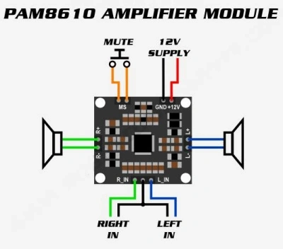 Bu amfi devresini kullanarak sizde kendinize ses ayarlı hoparlör sistemi kurabilirsiniz. 12V güç kaynağı ile kullanabileceğiniz bu ürüne iki farklı hoparlör birden bağlayabilirsiniz.