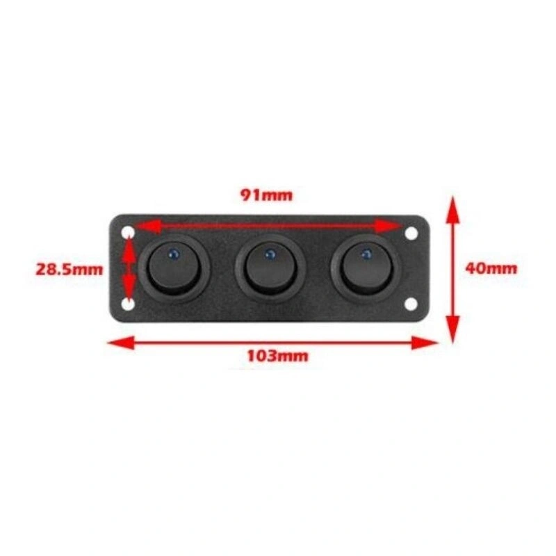 3'lü ON-OFF Mavi Nokta Işıklı Anahtar Switch Panel 12V-24V