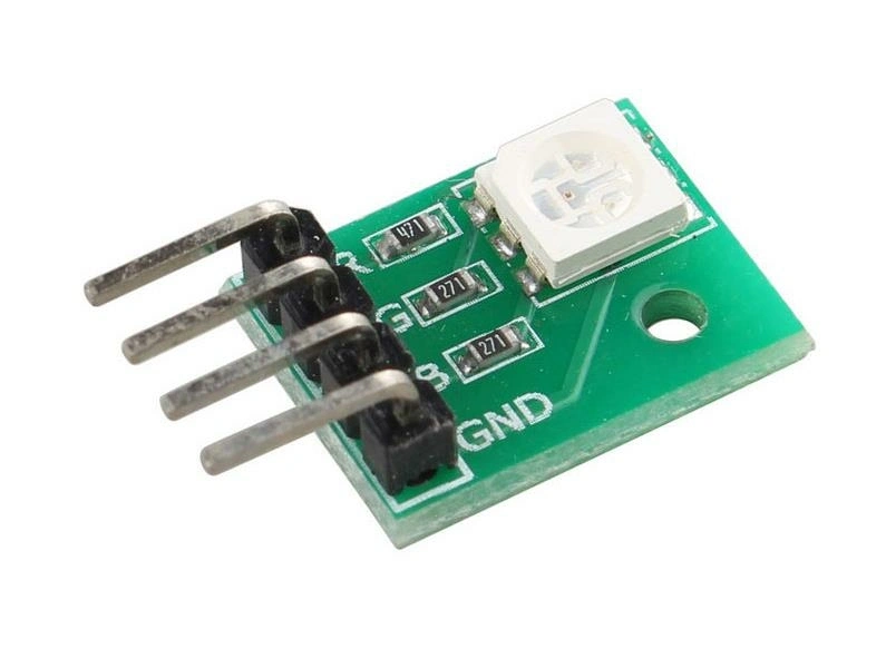3 renkli RGB LED PWM Modülü Özellikleri PCB boyutu: 15mm * 10.6mm PCB rengi: Yeşil 5050 tam renkli süper parlak LED Yanmayı önlemek için akım sınırlama direnci Yüksek seviyeli aydınlatma Çalışma Voltajı: 3.3V / 5V Ağırlık: 4g Arduino ile kullanılabilir..