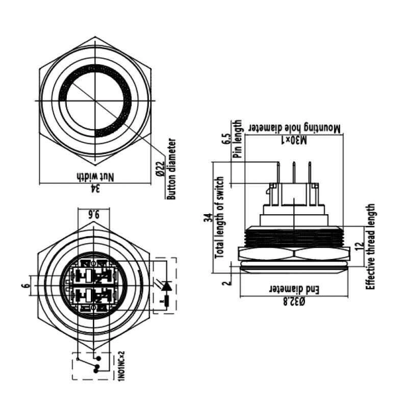 30B-P1-E 30mm Düz Yaylı Işıklı Metal Buton - Yeşil 30mm metal buton çeşitli endüstriyel uygulamalarda, elektronik projelerinde, toplu üretim projelerinde kullanabileceğiniz IP66 su geçirmezliğe sahip bir üründür. Paslanmaz çelikten imal edilmiştir. Ürün sızdırmazlık contası ile birlikte gönderilmektedir. Paslanmaz çelik olması ve IP 66 korumaya sahip olması nedeni ile metal butonlar dış mekanda ve iç mekanda kullanıma uygundur. Uzun ömürlü kullanım istenen yerlerde bu özellikleri nedeniyle tercih edilmektedir. Ayrıca buton basma yapısı olarak plastik buton çeşitlerine göre çok daha uzun kullanım ömrüne sahiptirler. Yaylı modelde 500000 basım, anahtarlı modelde ise 250000 basım ömrü bulunmaktadır. 30mm Metal Buton Çeşitleri 30mm Metal Buton Çeşitleri, kullanım şekillerine göre Yaylı ve Anahtarlı olmak üzere ikiye ayrılırlar. Yaylı butonlar basılı tutuldukları sürece voltaj geçişine izin verirler. Anahtarlı modeller ise ilk basımda enerjiyi geçirir, tekrar basıldığında ise kapatır. Ürün tercihi yaparken dikkat edilmesi gereken unsurlar aşağıdaki gibidir; Kafa Tipi: Çıkık yada Düz Işık: Işıklı yada ışıksız Işık Tipi: Power Simgeli yada Değil Ürün Tipi: Anahtarlı yada Yaylı Ürün seçimi yaparken gereken bu detaylar ürün görselinde ve isminde açıkça belirtilmektedir. Lütfen satın alım öncesi isim ve görsele dikkat ediniz. Teknik Özellikler: Çalışma Şekli: Yaylı Montaj Çapı: 30mm Materyal: Paslanmaz Çelik Koruma Seviyesi: IP66 Voltaj: 12-24V Akım: 3A Switch Kontakları: 1NO ve 1NC Elektriksel Çalışma Ömrü: > 250000 Basım Ömrü: 500000 (yaylı model) , 250000 (anahtarlı model) Kablolama: 20AWG Çalışma Sıcaklığı: -30 °C ~ 85 °C Daha ayrıntılı bilgi için aşağıda yer alan bağlantıya tıklayarak ürünün ayrıntılı teknik dokümanına ulaşabilirsiniz. Size özel sembol ve logolu üretim yapılır. Özel üretimler için [email protected]'a mail atabilirsiniz. Datasheet .