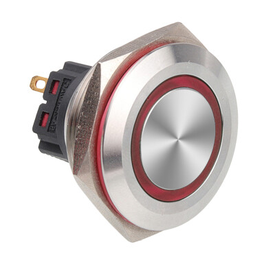 30B-P1Z-E 30mm Düz Anahtarlı Işıklı Metal Buton - Kırmızı