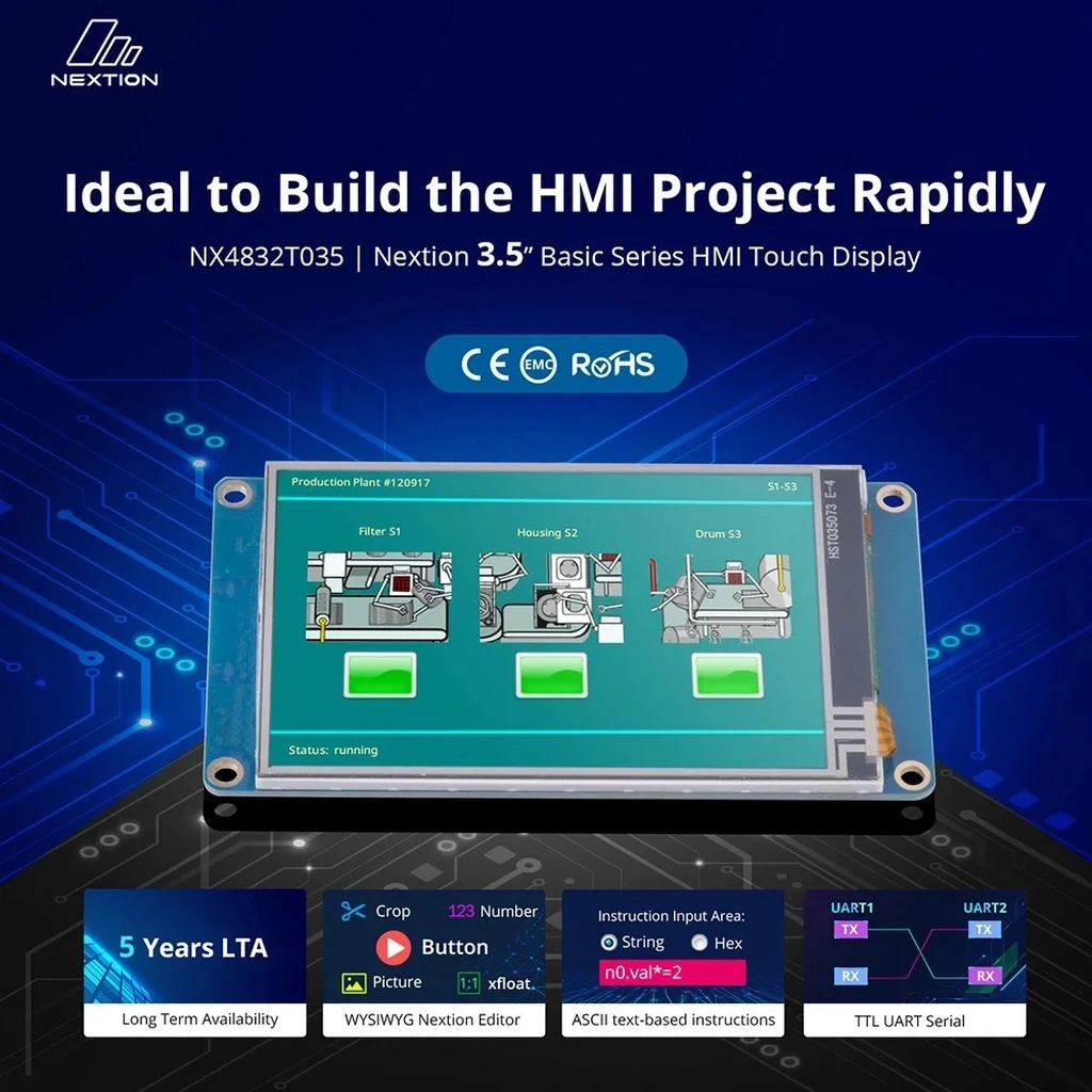 Farklı boyutlarda ve modellerde Nextion ekran çeşitlerimizi keşfedin. 2.4 inçten 10.1 inçe kadar boyutlar, Basic, Enhanced ve Intelligent seriler dahil geniş ürün yelpazemizi inceleyin.