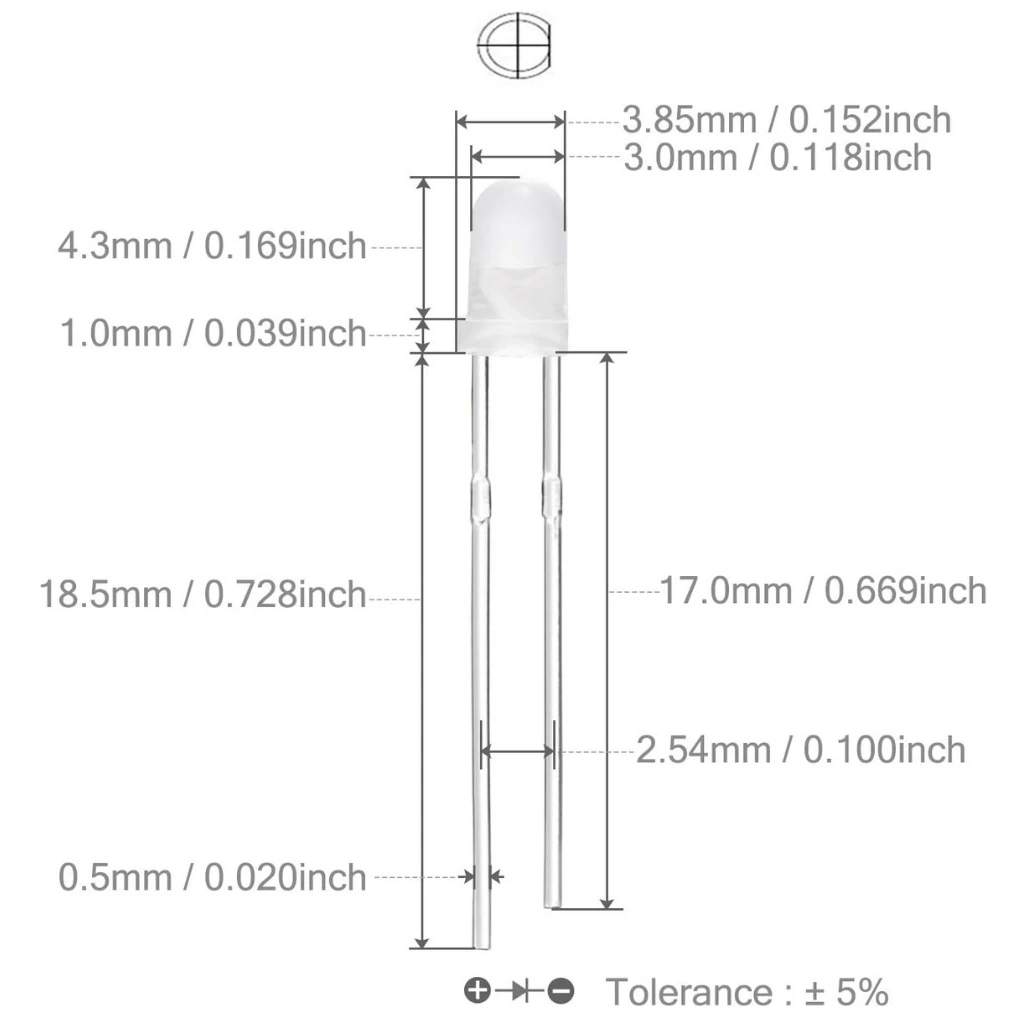 3mm beyaz diyotlar genellikle elektronik ve aydınlatma uygulamalarında kullanılan bir tür LED'dir. "Diffused" ifadesi, düşük odaklanma ve yayılma açısına sahip olduklarını ifade eder. Yani, ışık daha geniş bir açıda yayılır ve odaklı bir ışık demeti oluşturmazlar.