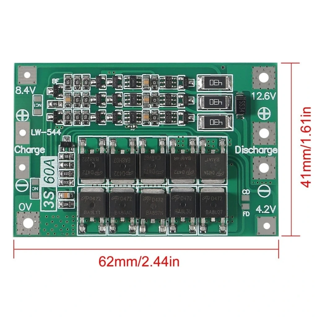 1 adet 3S 60A BMS 12.6V 18650 Lityum Pil Şarj Koruma Devresi