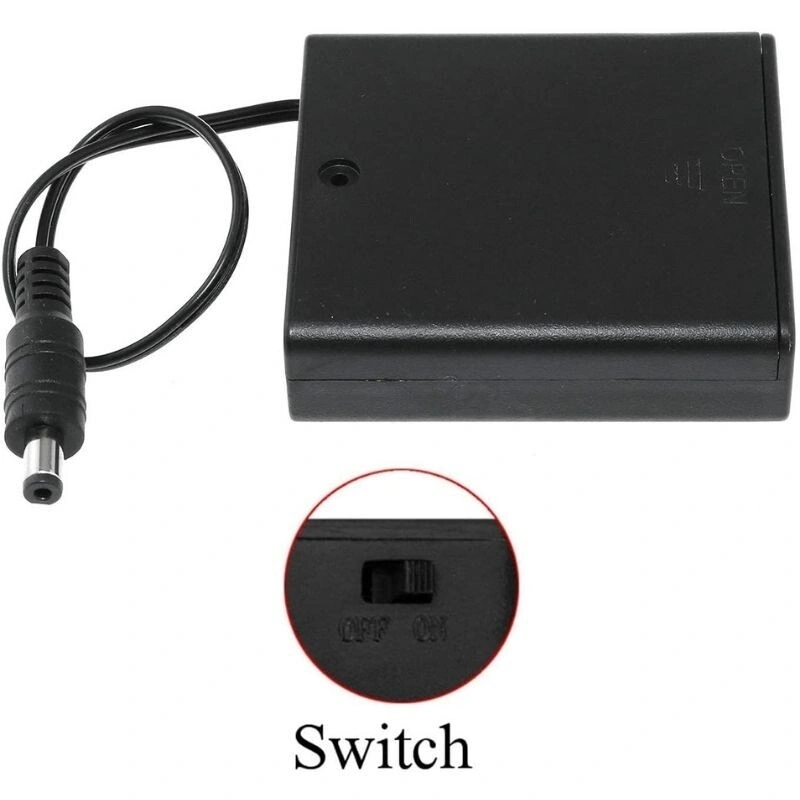 4'lü AA Pil Yuvası - Jacklı Anahtarlı ve Kapaklı 4'lü AA Pil Yuvası - Jacklı Anahtarlı ve Kapaklı, projelerinizde, çeşitli 6V güç gerektiren yerlerde kullanabileceğiniz jacklı pil yuvasıdır. Aç - Kapa yapabileceğiniz anahtara sahiptir. Jack ölçüleri 5.5x2.1mm'dir. Boyutu 70x64.5x20mm'dir. Kablo uzunluğu 20cm'dir..