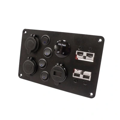 4'lü Mavi Nokta Işıklı Switch Panel Anderson Soket Çakmaklık ve Voltaj Göstergeli, Genellikle otomotiv sektöründe, araçlarda, teknelerde ve karavanlarda tercih edilen bir üründür. Ürünün üzerinde 4 adet ışıklı on-off anahtar, 2'li Voltaj göstergeli QC 3.0 USB soket, akünün Voltaj durumunu görebileceğiniz bir Voltaj göstergesi, 2 adet anderson akü konnektörü, çakmaklık ve QC 3.0 USB - Type-C girişi bulunan bir soket bulunmaktadır.