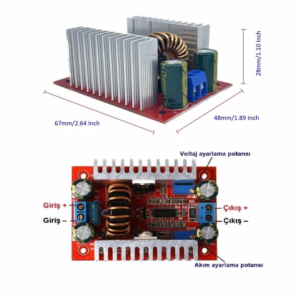 - Çıkış Voltaj Aralığı: Giriş voltajının üzerinde 60V DC'ye kadar (ayarlanabilir)
