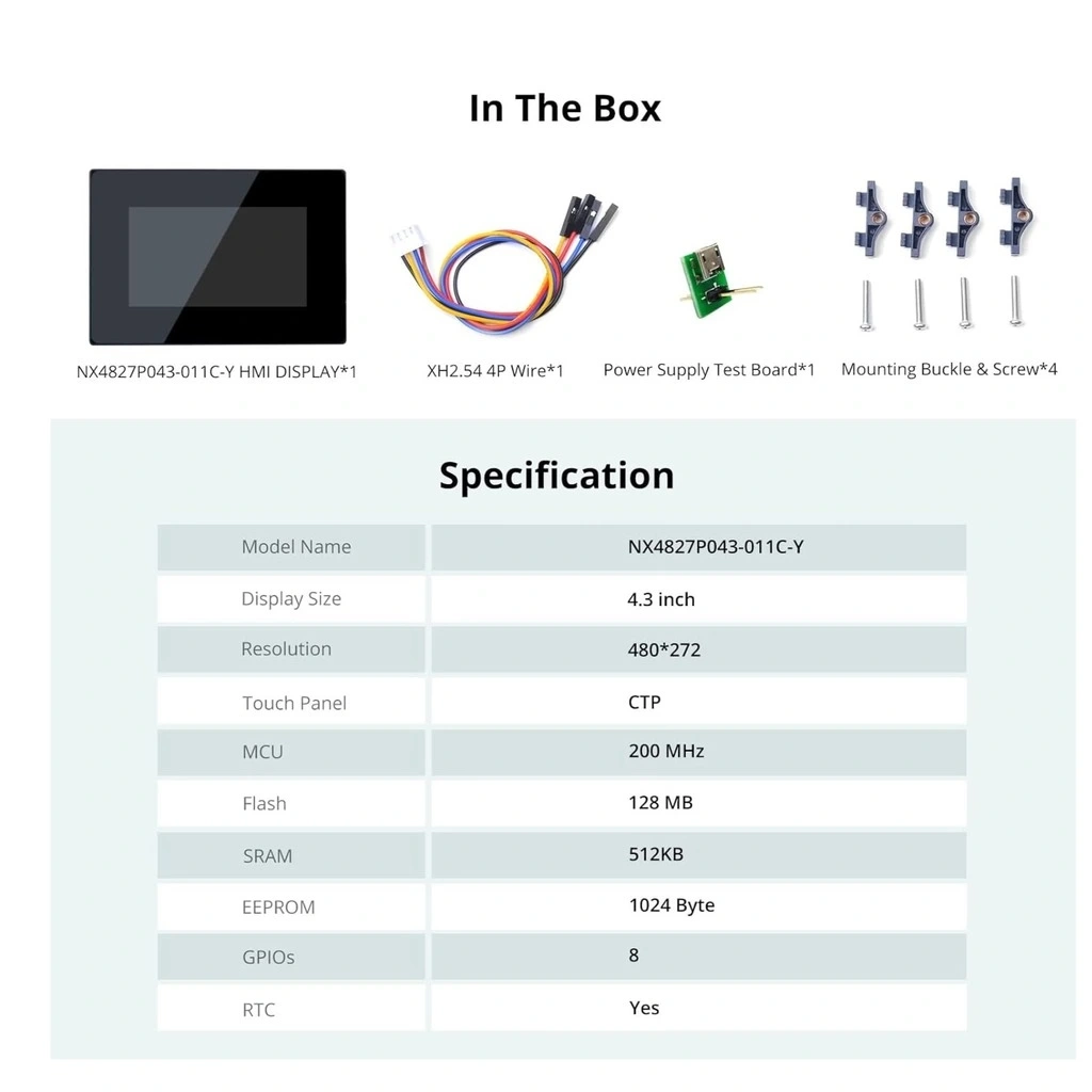 4.3 Inch Nextion Dokunmatik Ekran Kasalı model, elektronik projelerinize profesyonel bir görünüm kazandırmak için tasarlanmış, kullanıma hazır bir HMI (İnsan-Makine Arayüzü) çözümüdür. 480x272 piksel çözünürlük ve 65K renk derinliği sunan bu ekran, dahili kasası sayesinde montaj gerektirmeden doğrudan kullanılabilir.